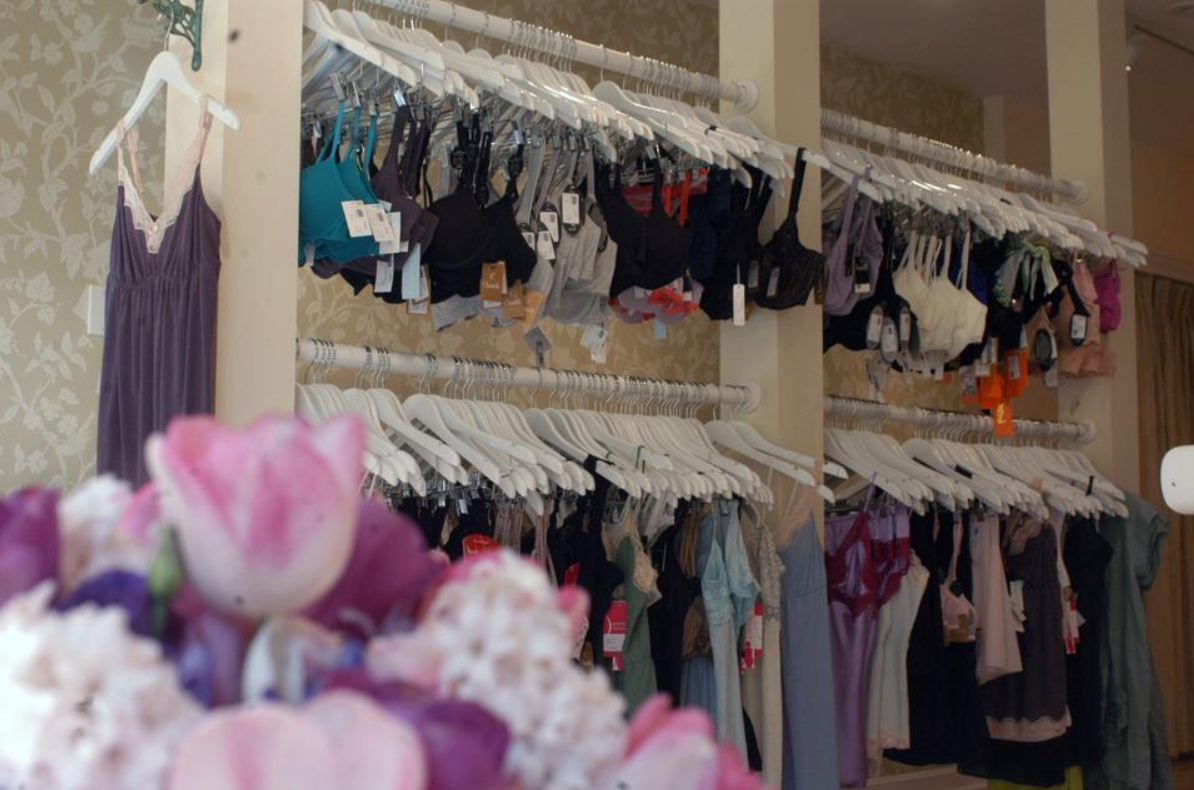 The store also sells lougewear, shapewear, sweaters, and accessories.