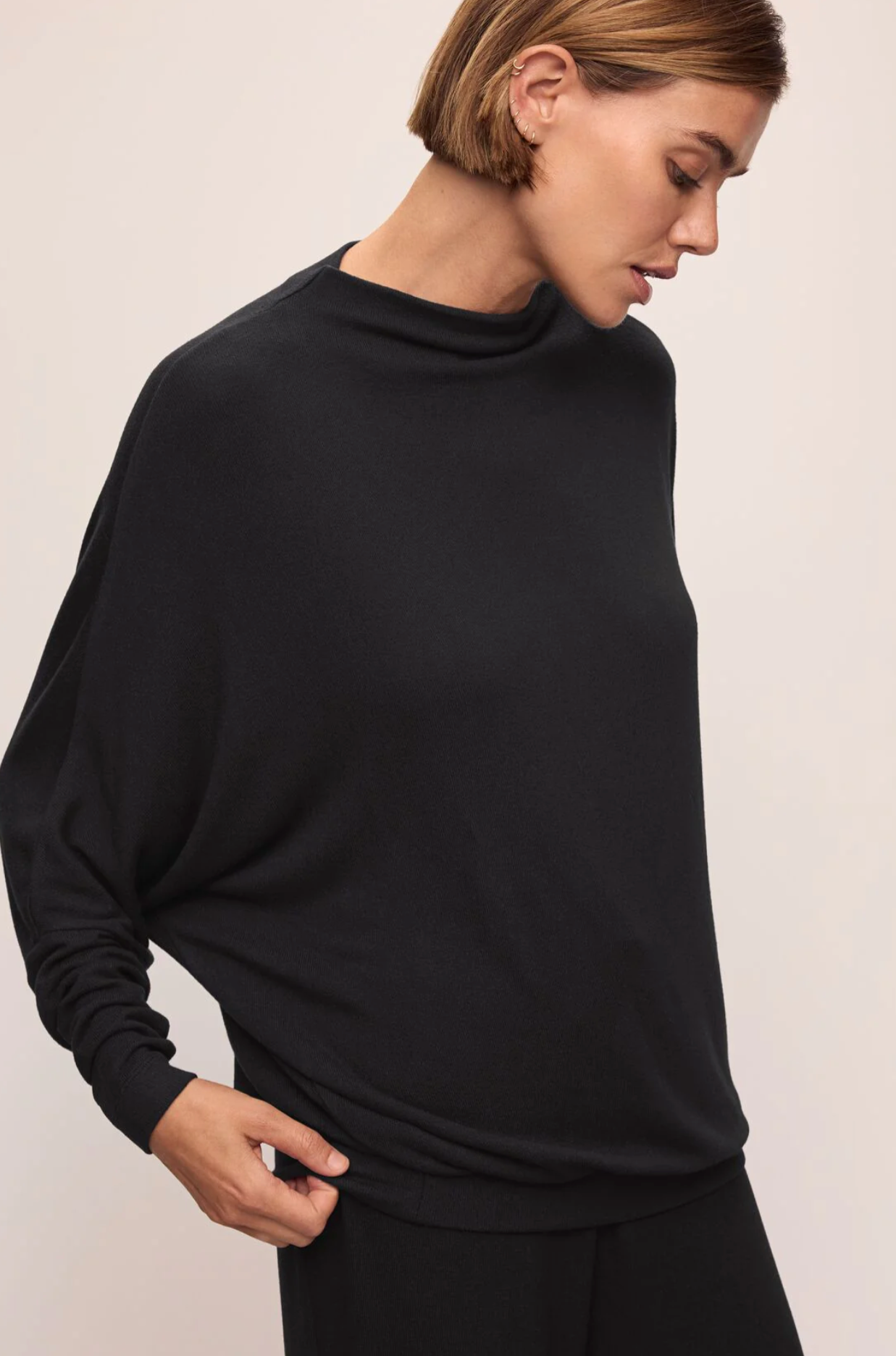 Let’s get cozy. Made from TENCEL™ Modal and a touch of Elastane for stretch and recovery, this super soft fabric is verified by OEKO-TEX® Standard 100, which means it was processed without harmful chemicals. This mock neck pullover has a dolman armhole with slim sleeves and a relaxed, comfortable fit. Pairs perfectly with the matching Cozy Time Pant.