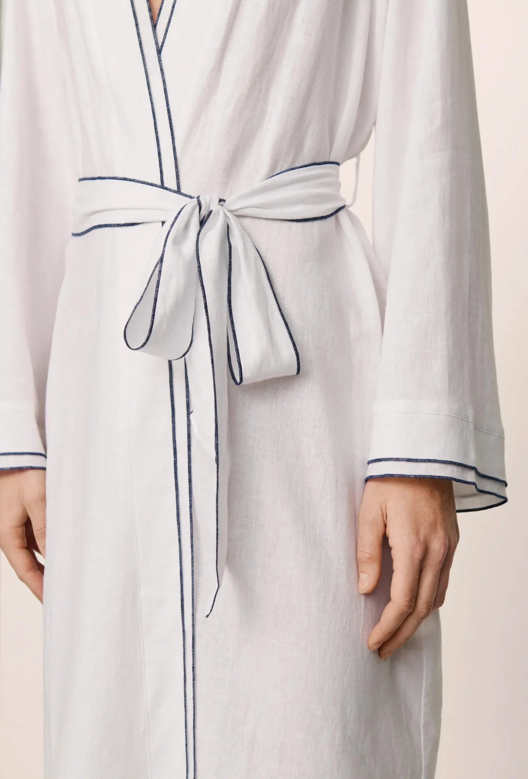 This classically styled robe from Eberjey features a flowy fit and contrasting piped navy detailing.