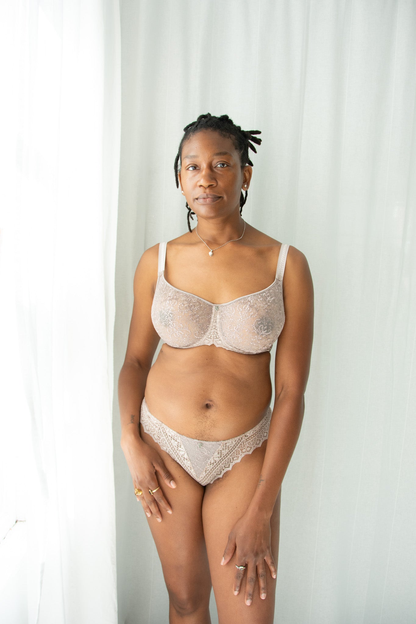 This stunning thong by Empreinte features scalloped lace detailing and a sexy, high-leg fit.