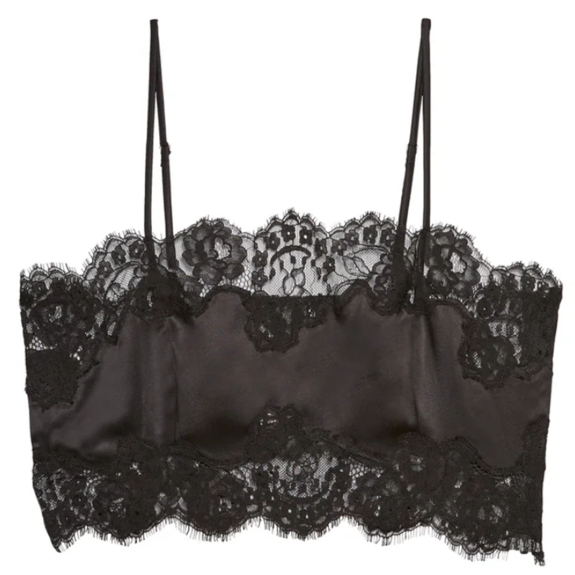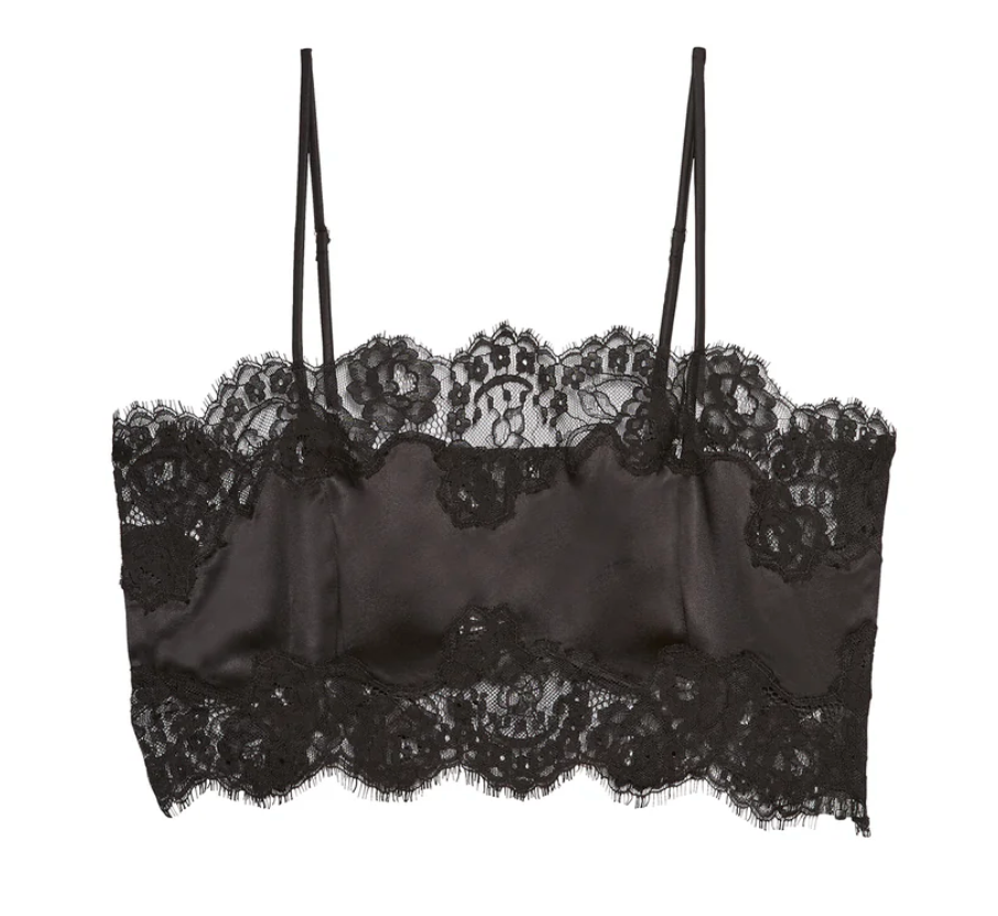 This gorgeous bralette from Fleur du Mal features a sophisticated black on black silk and lace fabrication.