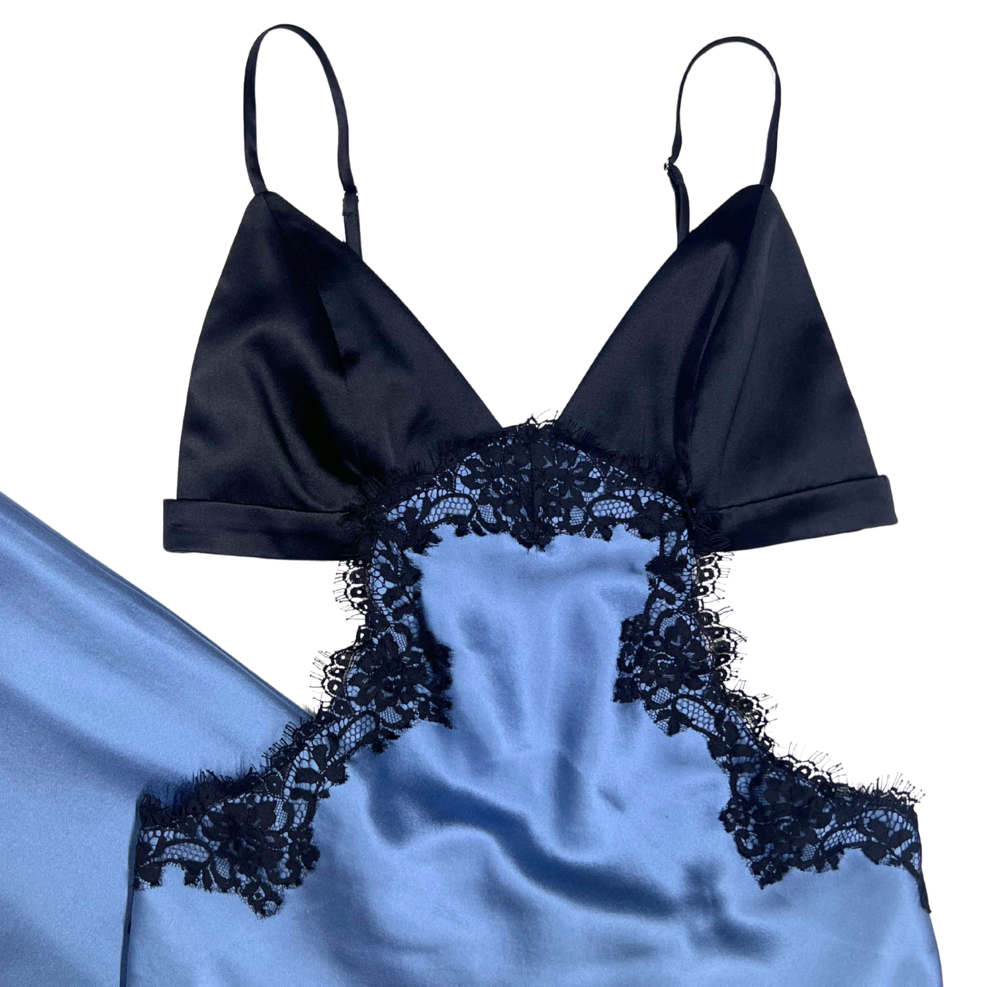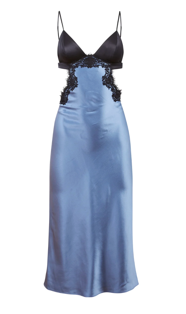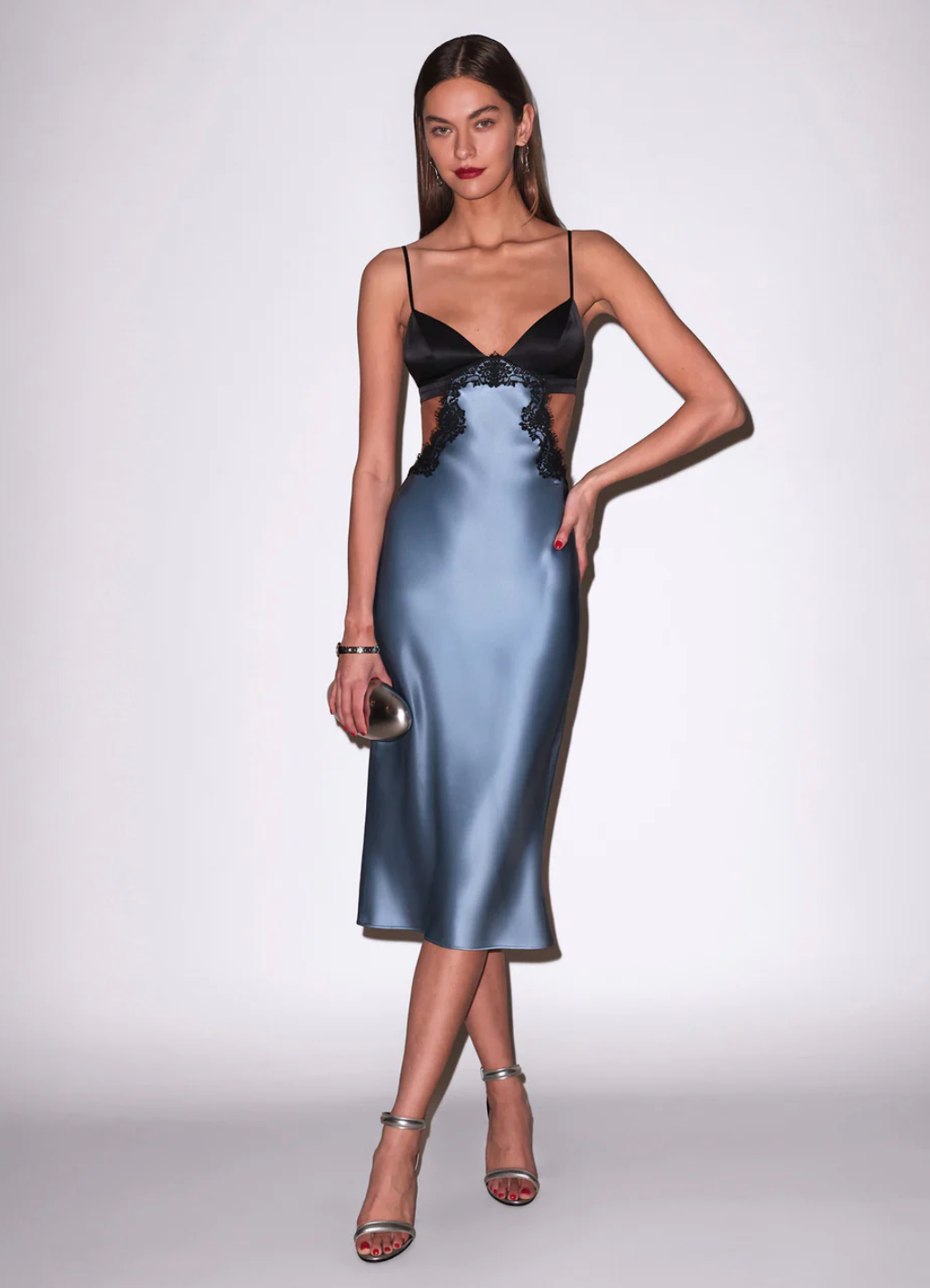 The Silk and Lace Cutout Slip by Fleur du Mal features cut out sides with lace trim and open back. Flattering bias falls just below the knee.