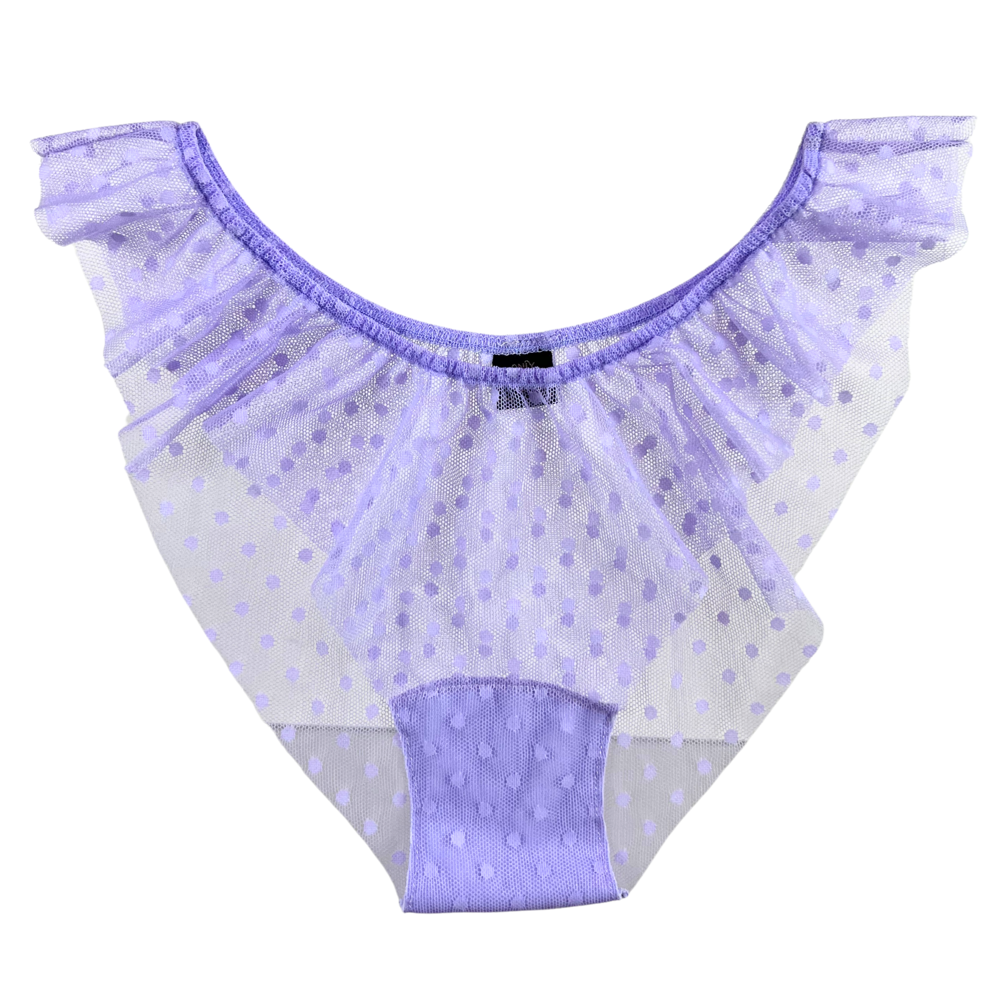 With a delicate Swiss-dot mesh fabrication and provocative flutter style legs, these bottoms are perfect for romantic trysts.