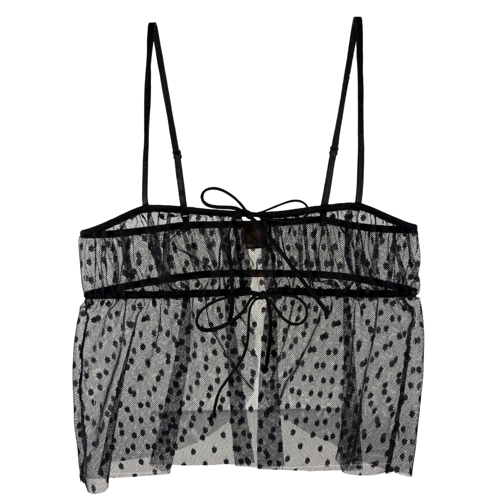 The Coucou Lola Joey Cami by Only Hearts features delicate front tie detailing and a Swiss Dot pattern.