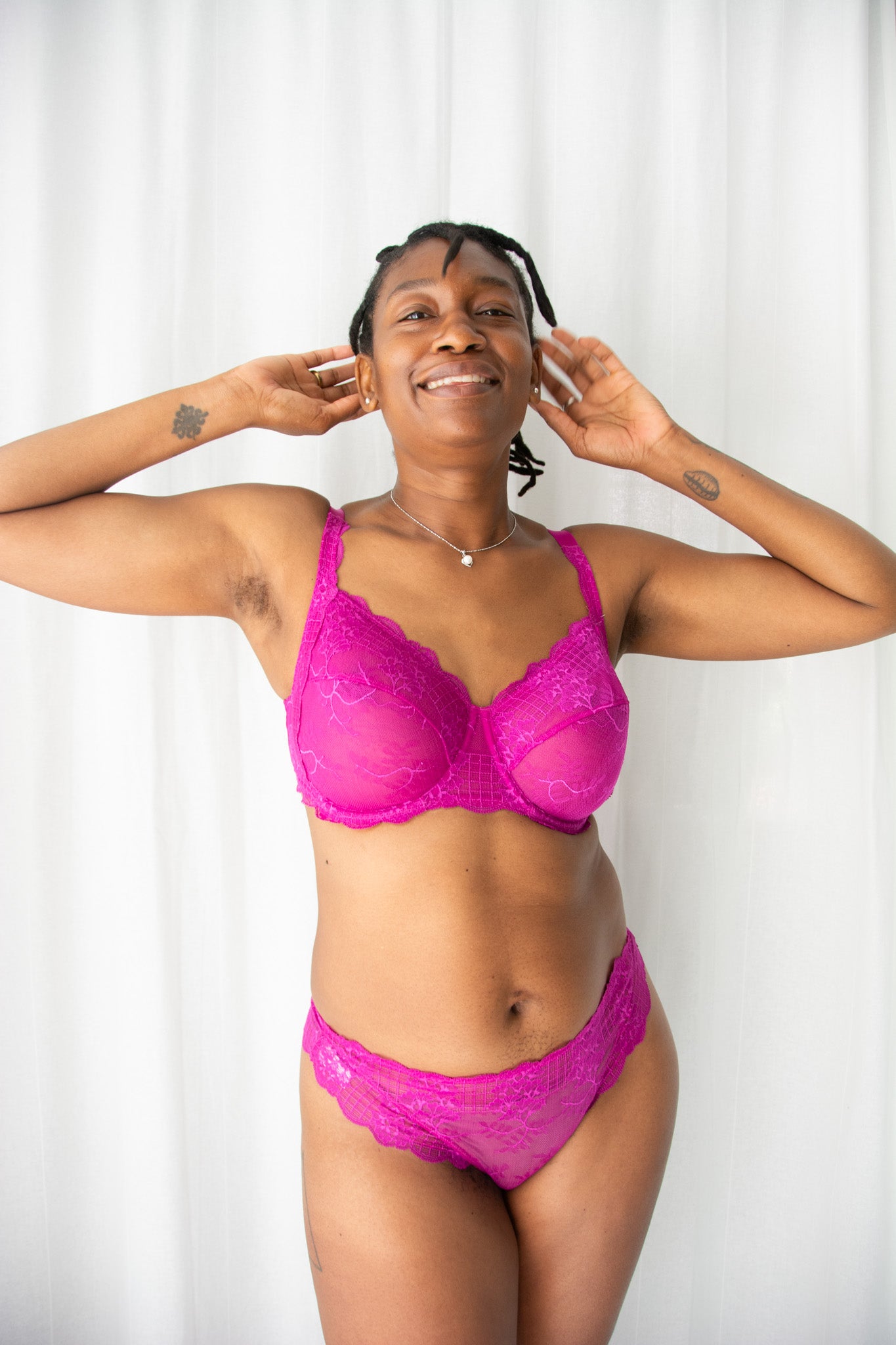 This full cup bra from Simone Perele features unlined lace cups and a supportive, lifting structure.