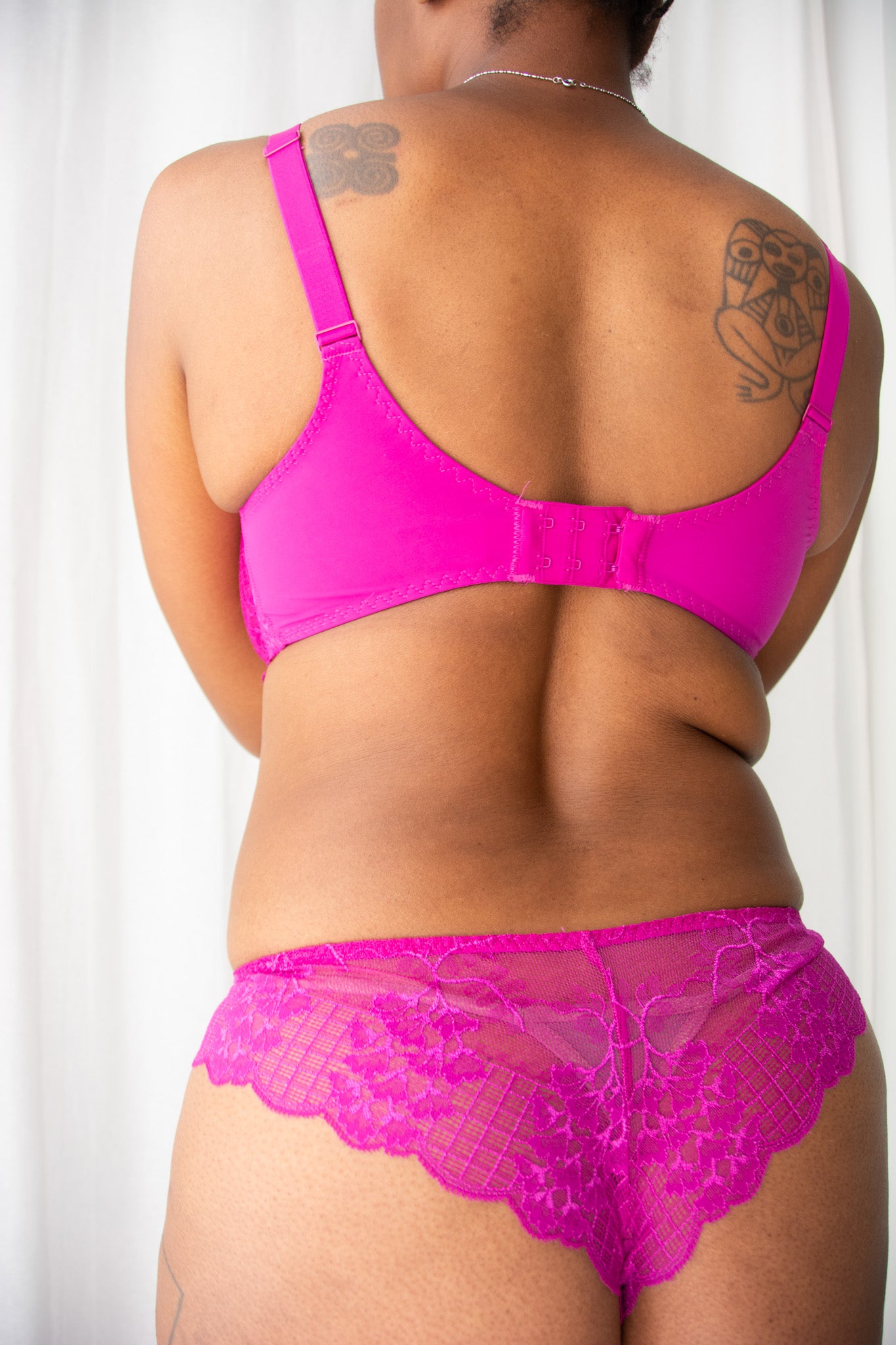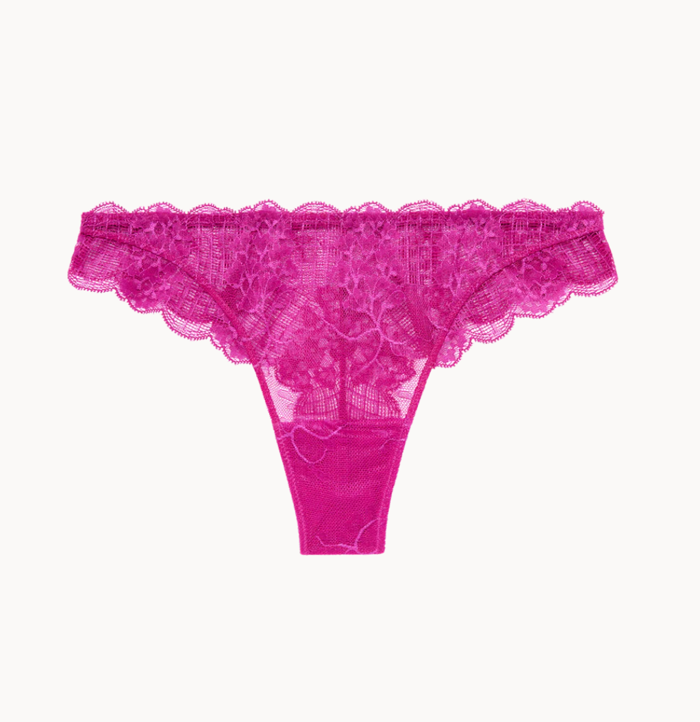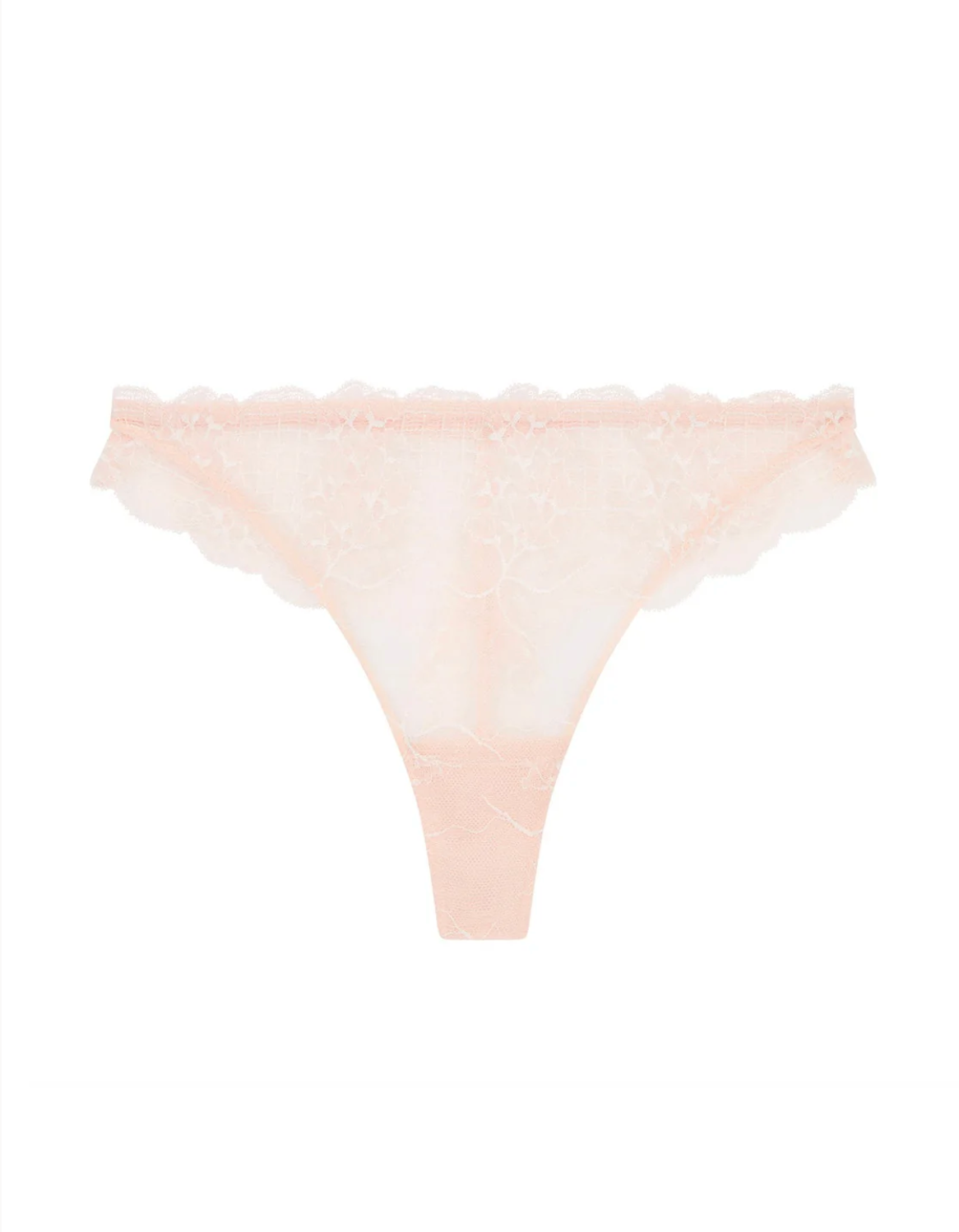 This cheeky bottom from Simone Perele features a classic tanga style and a unique, sophisticated lace pattern.