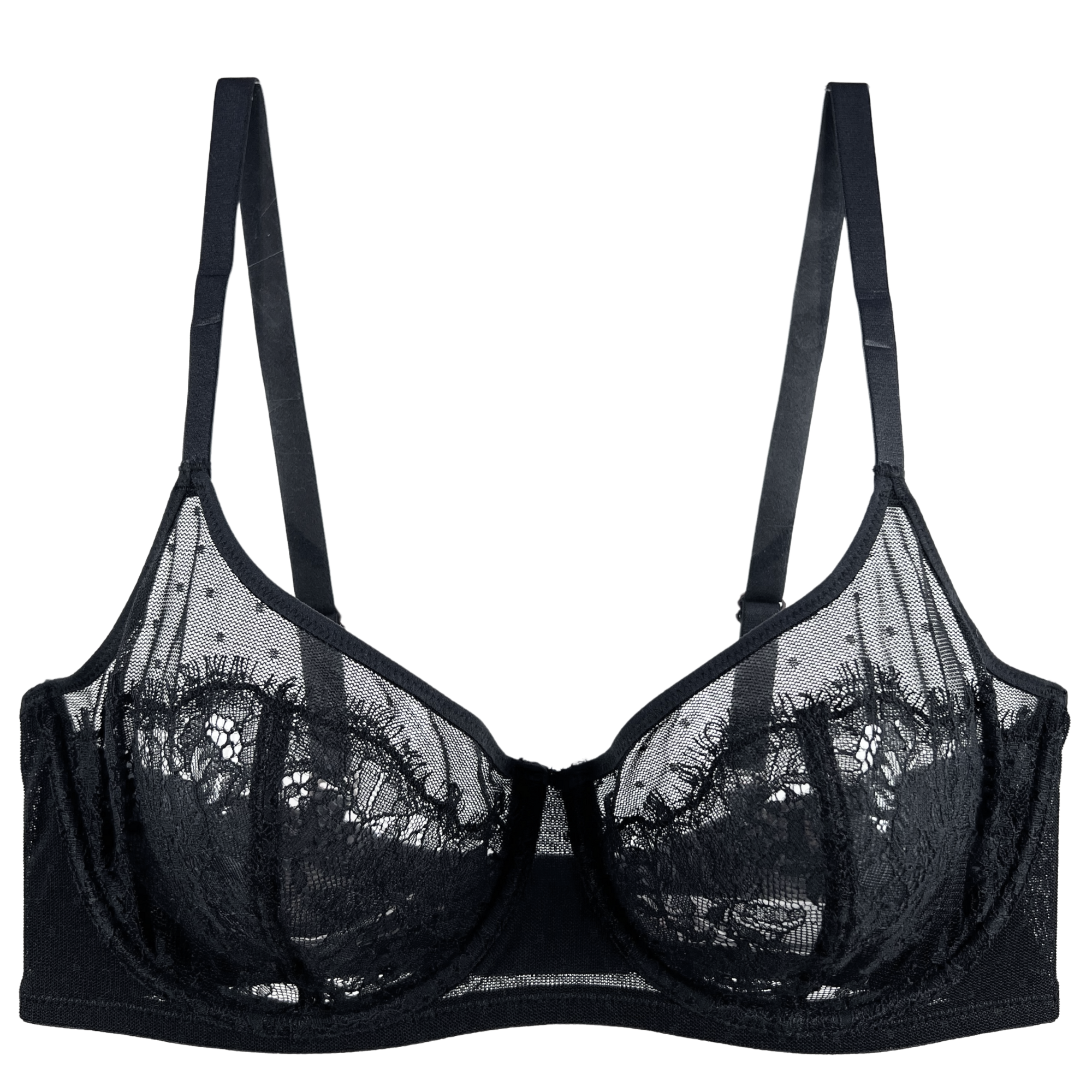 Mesh meets more rigid lace in this supportive, full bust bra from Skarlett Blue. It's a great day to night piece.