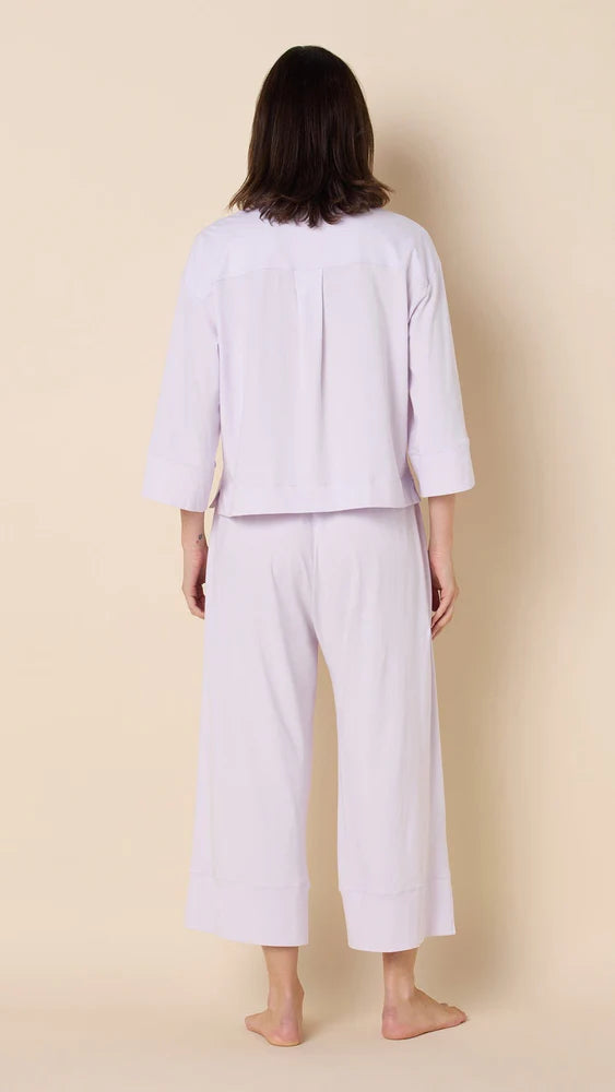 This oversized silhouette from The Cat's Pajamas drapes beautifully, with three-quarter sleeves, wide cuffs, and artful button details. The relaxed, flared pant with pockets completes a look that feels both modern and timeless—made to move with you from lounging to living.